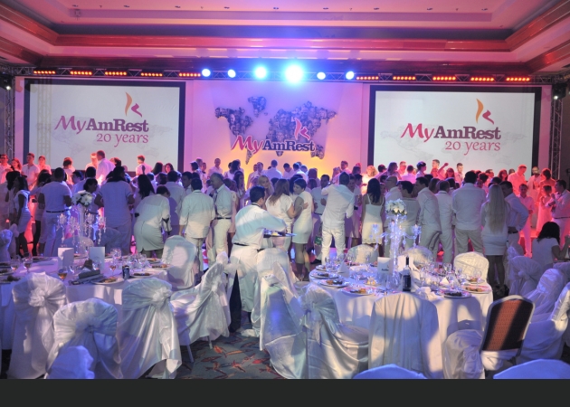 Produkcja i organizacja kongresu AmRest, oraz jubileuszu 20lecia firmy dla blisko 1000 gości z sześciu krajów. dla Brandów KFC, STARBUCKS, PIZZA HUT, BURGER KING, KAAB i LA TAGLIATELLA. Przygotowanie i  logistyka przedsięwzięcia, odprawa celna i transport wyposażenia technicznego i scenografii na potrzebę części artystycznych. Przygotowanie i odprawa karnetów ATA.